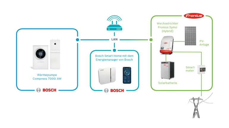 In Zukunft soll ein großer Anteil unseres Strom- und Wärmebedarfs mittels regenerativer Energiequellen gedeckt werden. Auch private Wärmepumpen und Photovoltaikanlagen leisten einen großen Beitrag zur Energiewende. Doch erneuerbare Energien stellen aufgrund Ihrer schwankenden Verfügbarkeit nicht nur Stromkonzerne vor neue Herausforderungen. Hausautomationssysteme, wie der Bosch Energiemanager, optimieren als intelligenter Stromverteiler die Energieströme im Haushalt und reduzieren damit unter anderem die Stromkosten. Folgende Möglichkeiten gibt es, Ihre intelligente Wärmepumpe zu vernetzen.