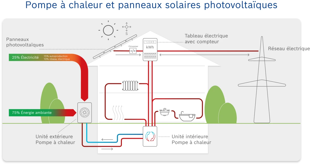 Combinaison d'une pompe à chaleur et de panneaux solaires