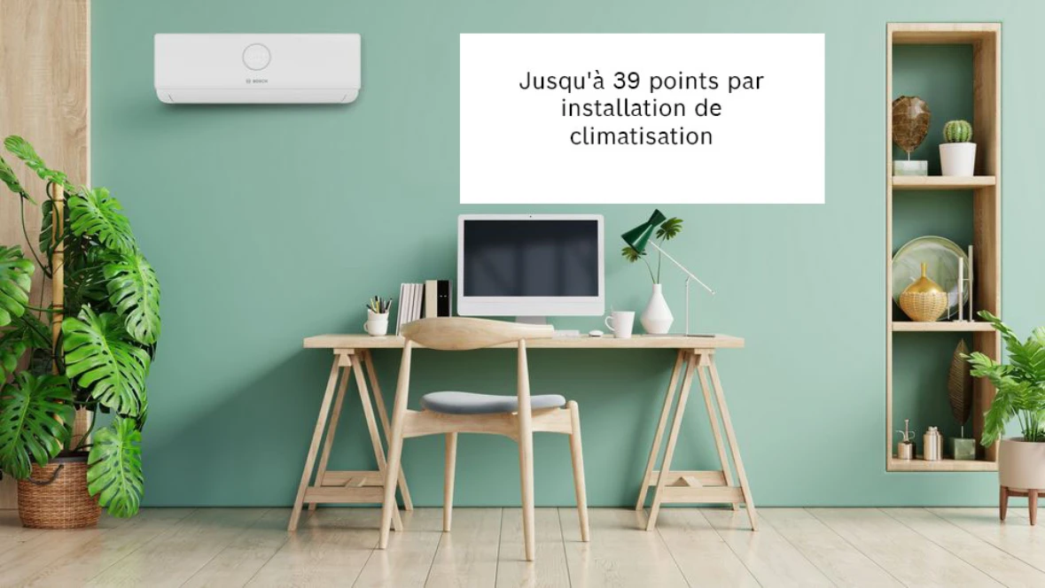 Jusqu'à fin septembre 2023, vous obtenez 3x plus de points partenaires par unité intérieure de climatisation enregistrée dans le Bosch Partner Portal ! Vous obtenez ainsi jusqu'à 39 points maximum par unité intérieure installée*