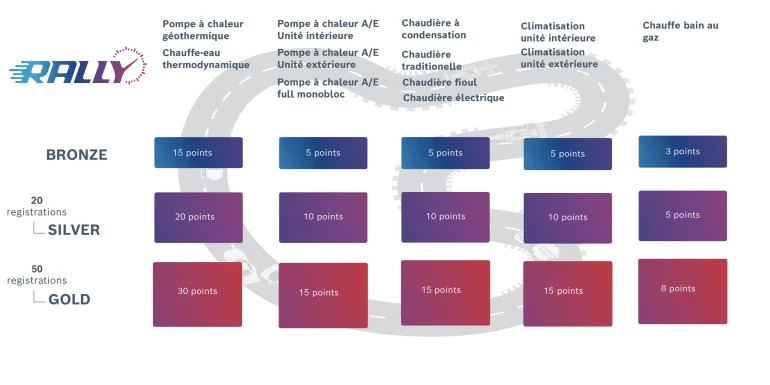 Vous enregistrez même plus de 50 appareils ? Vous devenez Partenaire Gold et vous recevez jusqu'à 18 points par pompe à chaleur enregistrée !