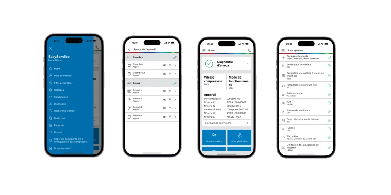 Avec notre application EasyService, vous effectuez tous les travaux de service nécessaires, de la mise en service à l'entretien et à la réparation, pour la quasi-totalité des systèmes de chauffage Bosch en un rien de temps – directement sur site chez vos clients.