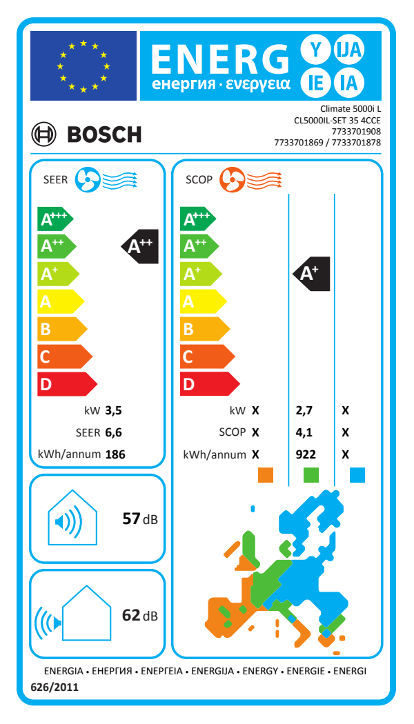 - ErP клас на енергийна ефективност A++ за охлаждане и A+ за отопление, SEER стойности до 6,6 и SCOP стойности до 4,2