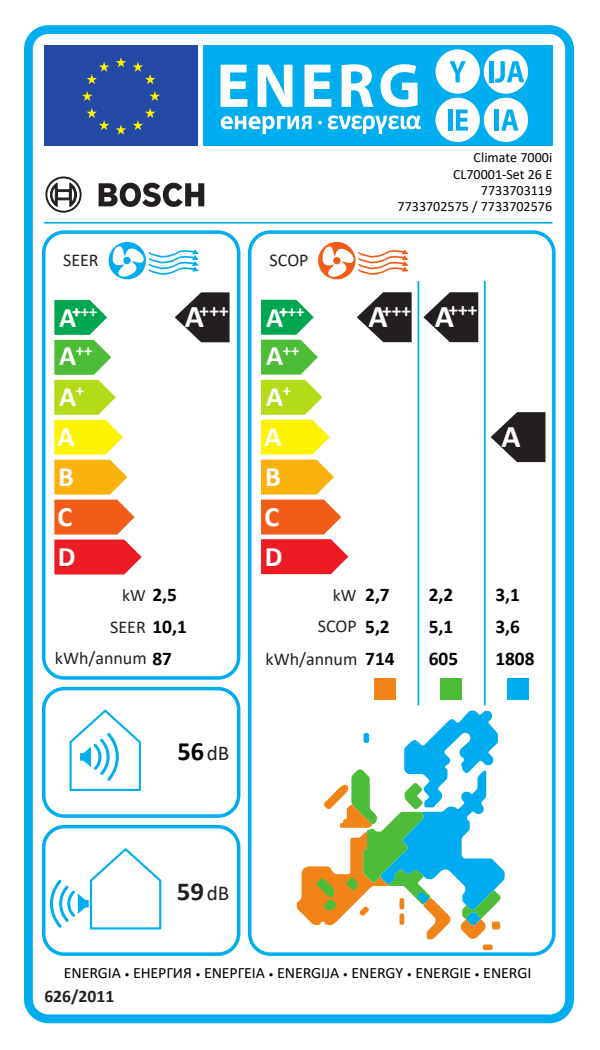 - Превъзходен сезонно обусловен коефициент на полезно действие (SEER/SCOP) до A+++ при охлаждане и отопление