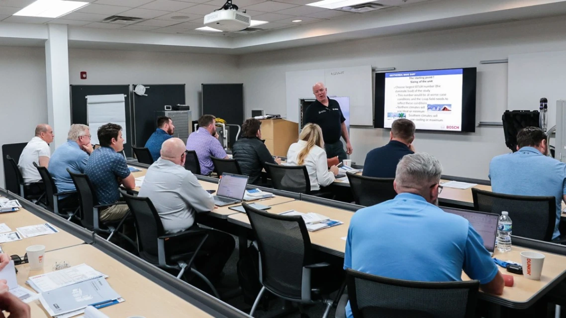First, we start in a classroom setting and provide an overview of the product/product type and its features, benefits, and technical data. Still, we know that most of the real learning takes place outside of the classroom. Following the in-class portion, you will get to practice on live fire equipment, giving you the hands-on experience you need to confidently install and service Bosch heating, cooling, and hot water products.