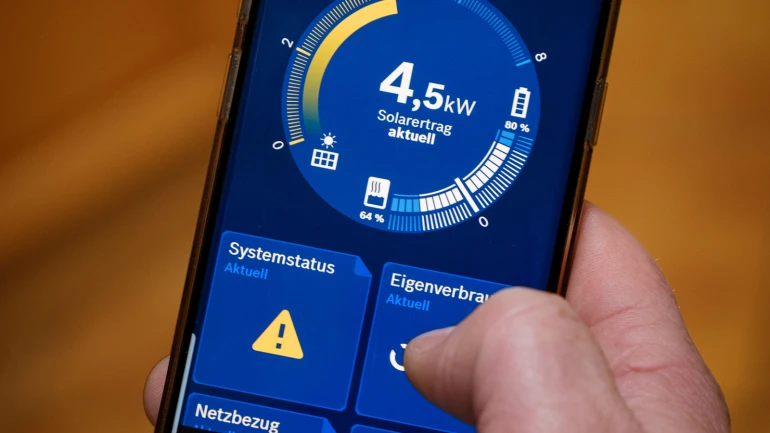Die auf dem Hausdach des Heizungsprofis installierte Photovoltaikanlage stellt eine zusätzliche Verringerung der Stromkosten um bis zu 60 Prozent sicher. Gesteuert wird die Triple-Hybridanlage durch den Energiemanager von Bosch. Die intelligente Stromverteilung durch die App führt zu einer effizienten Stromnutzung und einem erhöhten Autarkiegrad: Sind Überschüsse an Solarstrom vorhanden, werden diese dem Fronius Energiespeicher zugeführt und in jenen Zeiten genutzt, in denen keine Sonnenenergie zur Verfügung steht oder bei Bedarf für die kostenlose Ladung des Elektroautos verwendet.