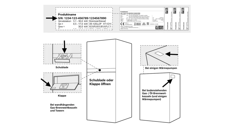 Links finden Sie eine Abbildung, wo Sie die Seriennummer an Ihrem Bosch Gerät finden.