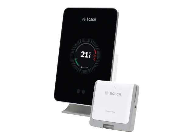 Mit dem smarten Heizungsregler EasyControl verbindet Bosch intelligente Technik, effiziente Wärmeregulierung und hohen Bedienkomfort in nur einem Gerät. Dank der automatischen Anwesenheitserkennung angemeldeter Smartphones wird die Heizleistung automatisch abgesenkt, sobald die Nutzer das Zuhause verlassen. Erst wenn sie zurückkommen, regelt der EasyControl die Heizung wieder nach oben und spart so bis zu 21 Prozent Heizkosten. In Verbindung mit der zugehörigen App und den smarten Funk-Heizkörper-Thermostaten von Bosch kann der EasyControl die Wunschtemperatur in bis zu 19 Räumen individuell einstellen und an die aktuellen Bedürfnisse anpassen.