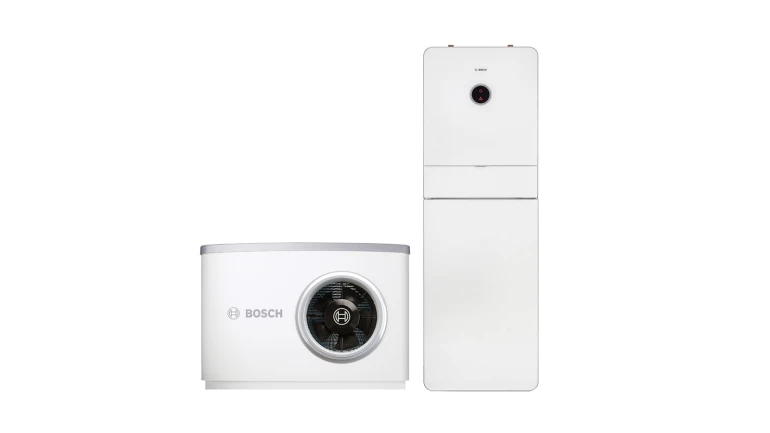 Junkers Bosch zeigt die Compress 8000i erstmals auf der ISH Energy in Frankfurt. Die Luft/Wasser-Wärmepumpe ist eines der ersten Geräte der Marke Junkers Bosch mit Bosch-Logo. (Quelle: Junkers Bosch)