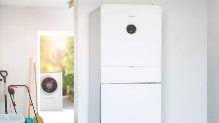 Sind die Hardware-Voraussetzungen gegeben, kann der Energiemanager im Bosch Smart Home über den Router mit dem Wechselrichter kommunizieren. Wenn der gesamte Haushaltsstrom vom Photovoltaik-Strom gedeckt ist, wird der überschüssige Photovoltaik-Strom in die Heizung als Wärme oder in eine Batterie zwischengespeichert. Die smarte Software passt den Eigenverbrauch aus der Solaranlage dabei optimal an den Tagesverlauf und die verfügbaren Ressourcen an: Der Energiefluss wird gezielt gesteuert, sodass der Haushaltsstromverbrauch möglichst durch solare Erträge gedeckt wird. Erst wenn die Photovoltaik-Anlage mehr Strom liefert, als im Haushalt benötigt wird, wird die Wärmepumpe modulierend, also abgestimmt auf den verfügbaren Photovoltaik-Strom, zugeschaltet. Die Wärmepumpe erwärmt dann das Wasser im Pufferspeicher und stellt es als Heizwasser zur Verfügung.