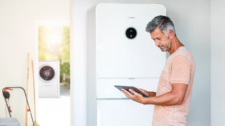 Der Energiemanager kann als App für iOS und Android heruntergeladen werden. Über diese App erfolgen die Lizensierung und die Konfiguration. Smart-Home-Nutzer steuern den Energiemanager im laufenden Betrieb danach ganz einfach über ihre Bosch Smart Home App per Smartphone oder Tablet. Dort sind alle im Netzwerk angeschlossenen Geräte übersichtlich gelistet – man muss lediglich die vernetzte Wärmepumpe und die Photovoltaik- Anlage nach der Konfiguration über die Energiemanager-App als neue Geräte einbinden.