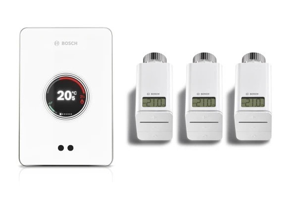 Mit dem smarten Heizungsregler EasyControl verbindet Bosch intelligente Technik, effiziente Wärmeregulierung und hohen Bedienkomfort in nur einem Gerät. Dank der Anwesenheitserkennung angemeldeter Smartphones wird die Heizleistung automatisch abgesenkt, sobald die Nutzer das Zuhause verlassen. Erst wenn sie zurückkommen, regelt der EasyControl die Heizung wieder nach oben und spart so bis zu 21 Prozent Heizkosten. In Verbindung mit der zugehörigen App und den smarten Funk-Heizkörper-Thermostaten von Bosch kann der EasyControl die Wunschtemperatur in bis zu 20 Räumen individuell einstellen und an die aktuellen Bedürfnisse anpassen.