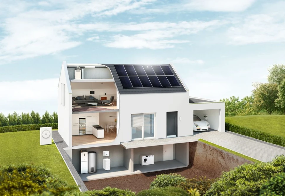 - Modernisierung eines Einfamilienhauses mit Gas-Brennwertkessel, Solarstrom und Wärmepumpe: