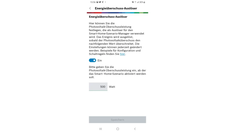 Schritt 1: Aktivieren und konfigurieren des Überschuss-Auslösers in der Energiemanager-App