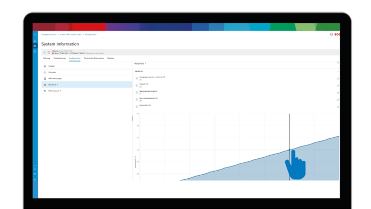 Med denne udvidelse har du en effektiv og brugervenlig funktion til rådighed, så du kan give dine kunder en enestående serviceoplevelse. Alle data i et varmesystem med systemstyring UI 800, CW 400 el. HPC 400 kan vises grafisk i overskuelig form. Således kan du meget nemt analysere og evaluere temperaturer og skiftetilstande, som f.eks. rum-, fremløbs- og varmtvandstemperatur eller brænderes, varmekredspumpers og blandeventilers tilstande.