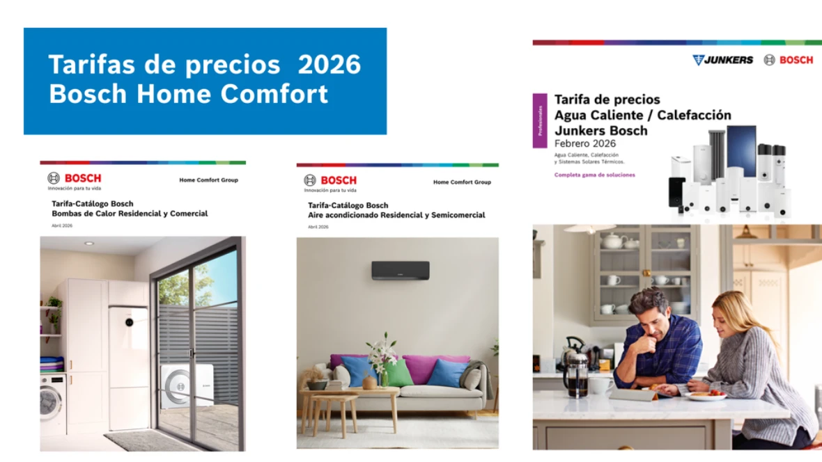 Madrid, 19 de marzo de 2026. Bosch Home Comfort anuncia la entrada en vigor, el próximo 1 de abril de 2026, de sus nuevas tarifas de precios para sus soluciones de calefacción, agua caliente sanitaria y climatización. Esta actualización se articula en dos documentos diferenciados, la Tarifa Junkers Bosch y la Tarifa-Catálogo Bosch de climatización y bombas de calor, que incorporan mejoras orientadas a facilitar el trabajo diario del profesional, con un acceso más ágil a la información y una organización más especializada por gamas de producto.