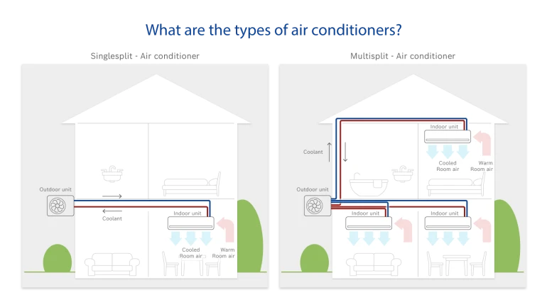 Razlikujemo med deljenimi klimatskimi napravami in klimatskimi napravami z več razcepi: