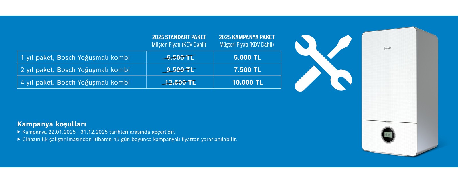 - Kampanyalı fiyatlar yeni devreye alınan kombiler için ilk çalıştırma tarihi itibariyle 45 gün içinde geçerlidir.